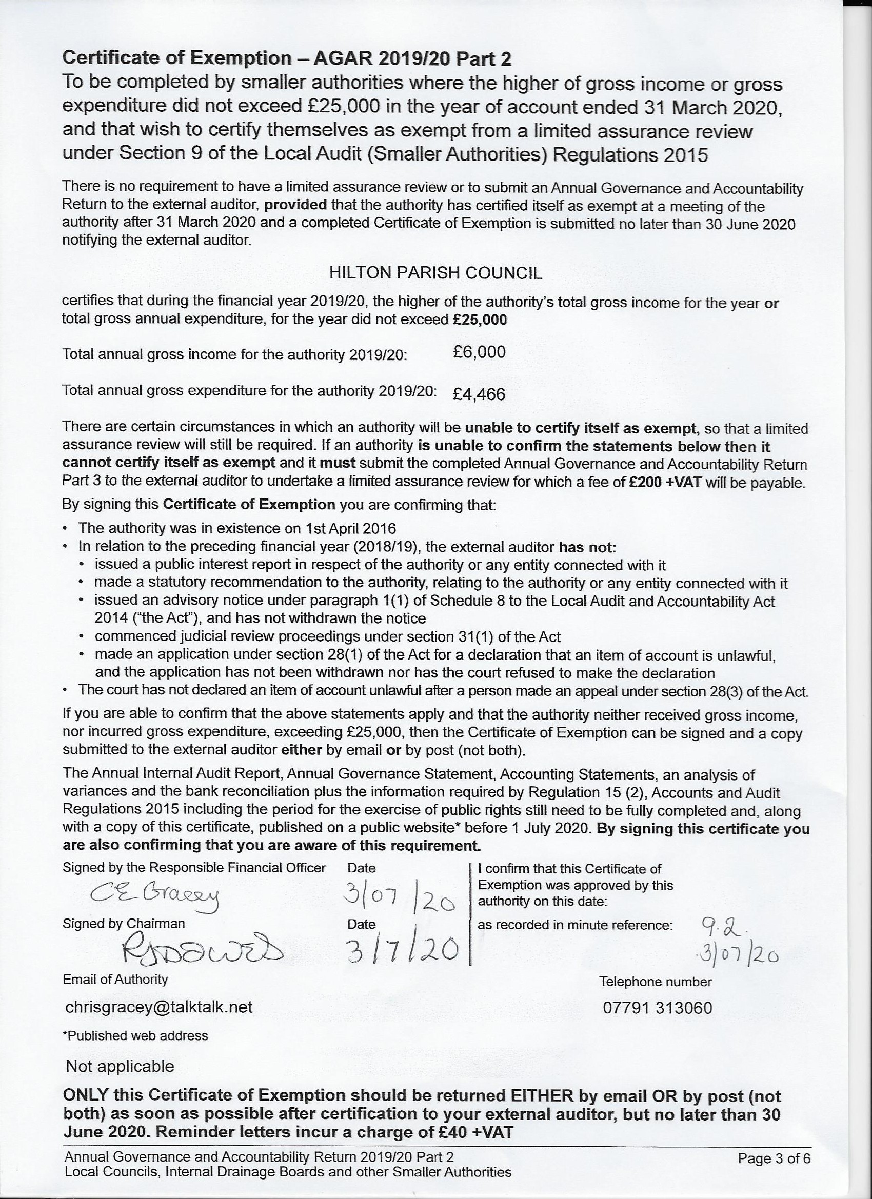 AGAR 2019-20 Exemption Certificate 05.07.20
