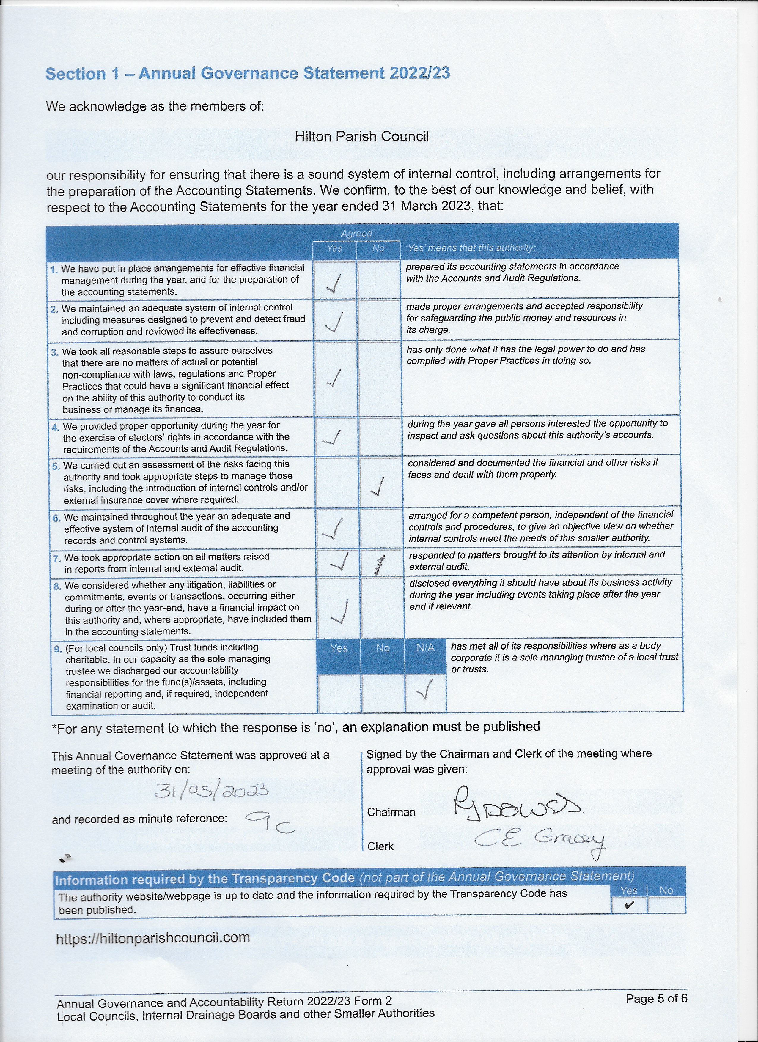AGAR 2022-23 Section 1 Annual Governance Statement P.5 01.06.23